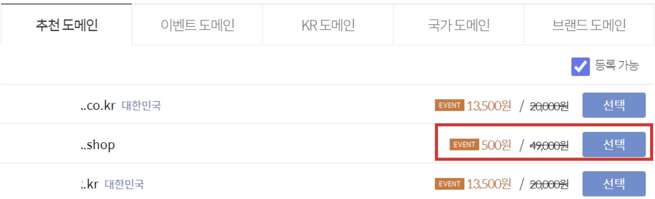 .shop붙은 것은 500원으로 나온다. 필자는 가장 저렴한 500원을 샀다.