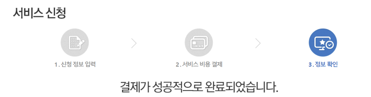 [선택]버튼을 누르면 장바구니에 선택한 도메인이 뜬다. [신청하기]를 누른다.