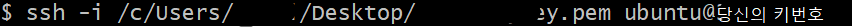 ※ ubuntu@뒤에 띄워쓰기하고 키번호 넣으면 안됨. 이어붙여야 된다.