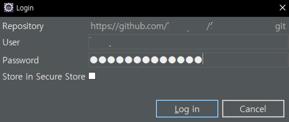 - [Authentication]의 [User], [Password]는 github의 아이디와 비밀번호를 넣습니다.