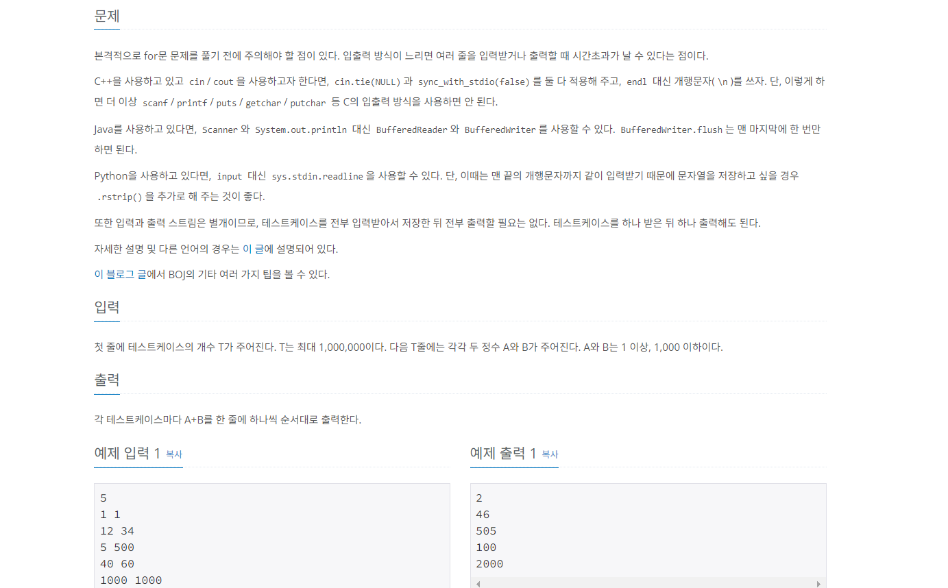 [백준] 15552 빠른 A+B 본문