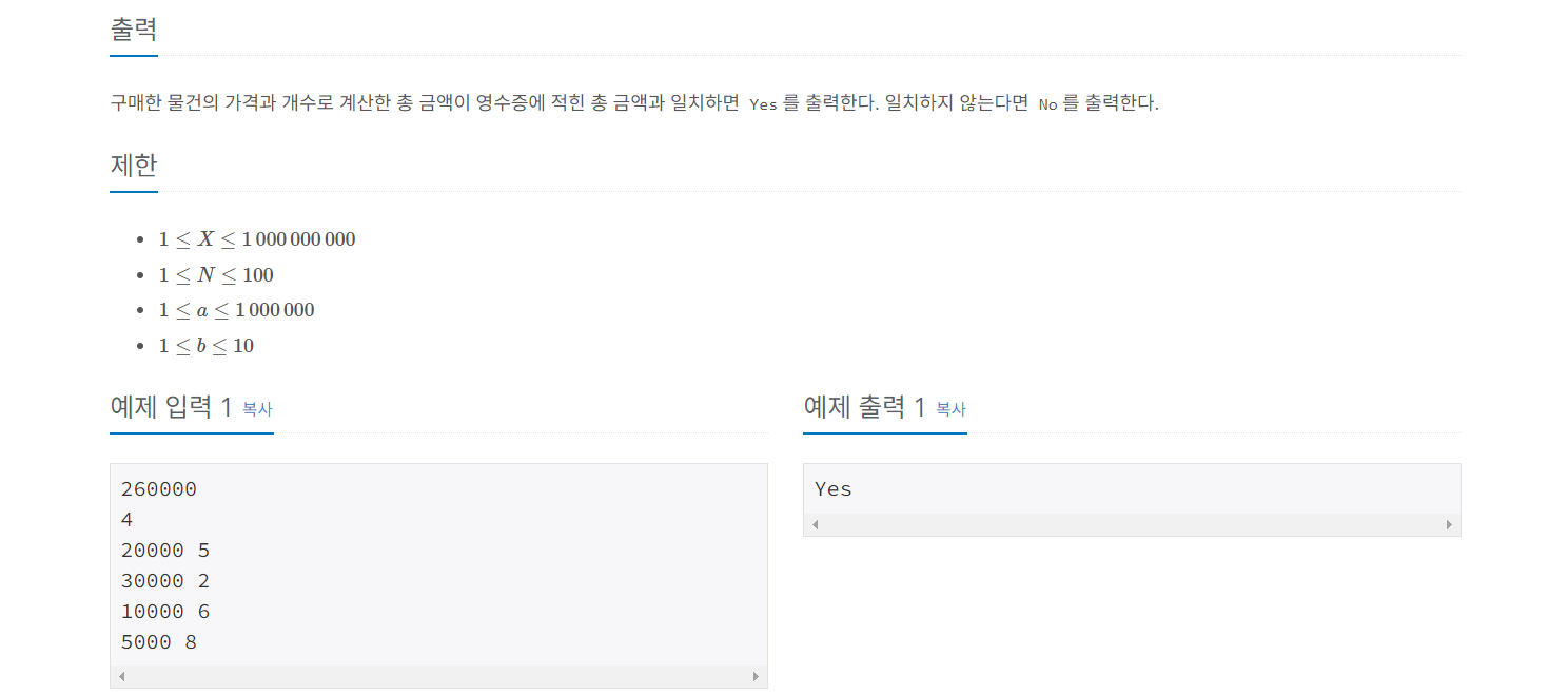 [백준] 25304 영수증
